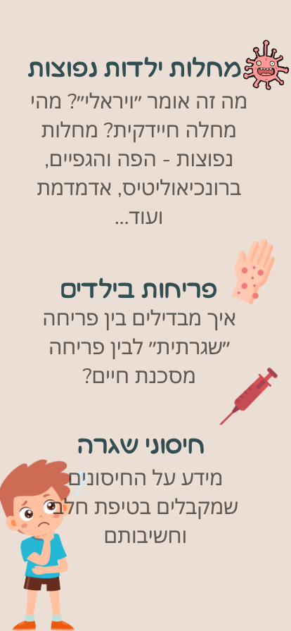 מבטיחים לתת לכם את כל הכלים מנסיוננו הרב כרופאים וגם כהורים כדי להקל על תחושת הלחץ ואי הודאות סביב בריאות הילדים.